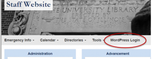 To begin, navigate to https://www.library.illinois.edu/staff/ and click on the “WordPress Login” menu item underneath the banner image. Use your NetID and password.