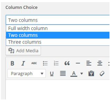 The Column Choice section of the Homepage editing interface allows content editors to divide