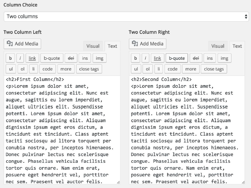 transferred to any of the “ Two Columns ” or “ Three columns ” editors.