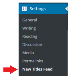 - The new titles feed is located in the WordPress Dashboard in the left hand menu under Settings > New Titles Feed.