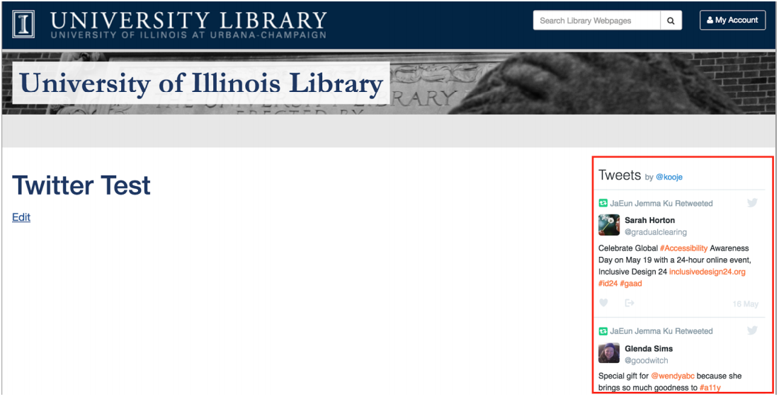- For User Timeline, enter the username of the user whose Tweets you want to display.
